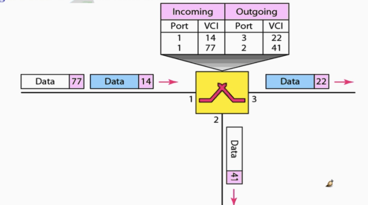 Virtual Circuit의 연결을 확인하기 위해서는 아이디가 필요한데 이를 Virtual Circuit Identifier라고 부릅니다. 여러 개의 연결을 설정 할 때, 이 패킷을 어디로 들어와서 어디로 보내는지를 패킷의 헤더에 붙려서 VIC 값을 보고 스위치가 테이블에서 판단하게 되어 이를 상대편에 내보냅니다.