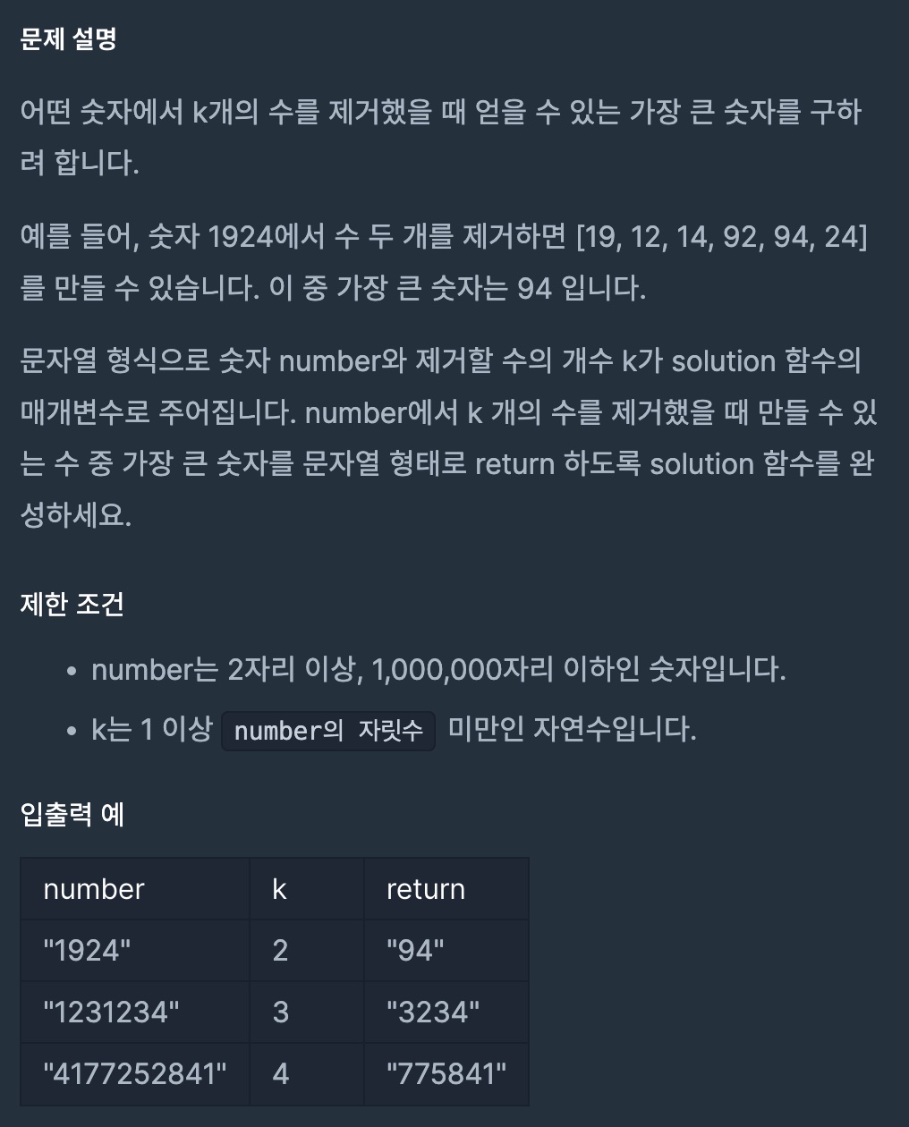 - number = "4177252841", k=4일 경우,